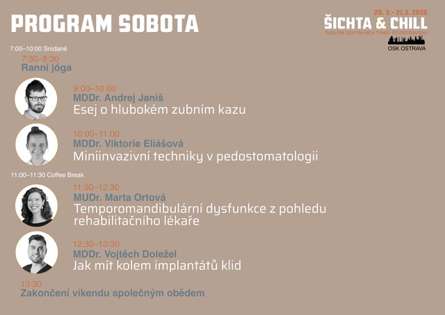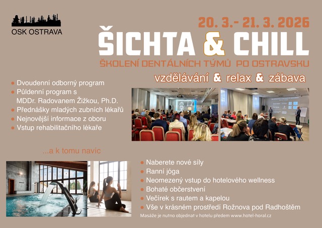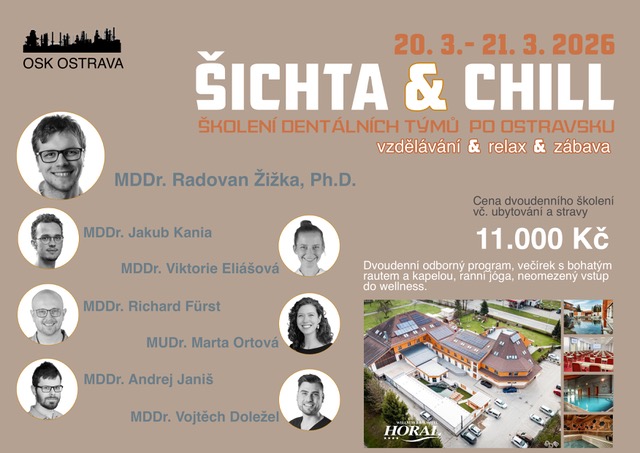 Konference je zařazena do systému celoživotního vzděláván í České stomatologické komory pod číslem 10/1/553/2026 a je ohodnocena 9 kreditními body. Kapacita je omezena!